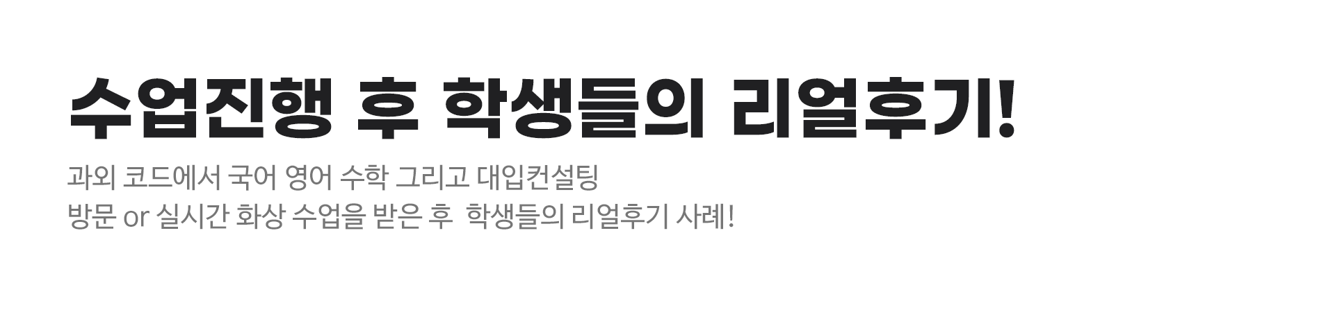 1. 과외 수업을 시작하게 된 계기는? 학원은 정해진 커리큘럼을 정해진 시간에 들어야하기 때문에 불편한 점이 많았습니다. 그래서 1:1 수업을 찾게 되었는데 엄마가 인터넷으로 검색을 통해 알아보시고 저한테 권유해 주셨어요~ 영어 수업을 먼저 시작했는데 만족도가 높았기 때문에 국어도 한번 해보고 싶어서 시작하게 되었습니다.